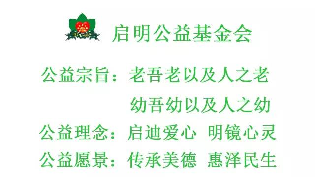 “啟明公益基金會”是一個由熱心慈善事業的公民、法人以及其他社會組織志愿者、愛心人士參加的全國性非營利的公益社會團體?;饡浴皢⒌想夹?、明鏡心靈”的理念積極倡導慈善意識,以“老吾老以及人之老,幼吾幼以及人之幼”做為基金會的宗旨,用傳承美德、傳遞愛心的實際善舉,來彰顯公益的力量。