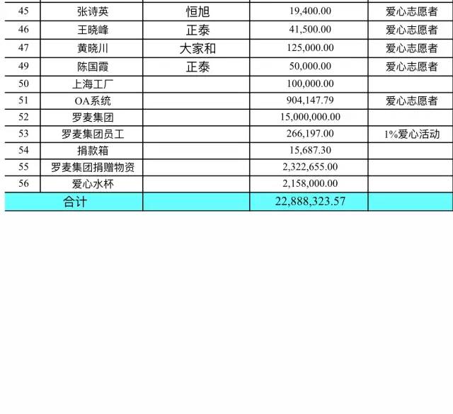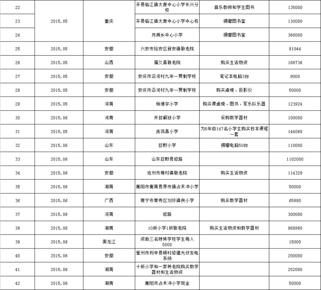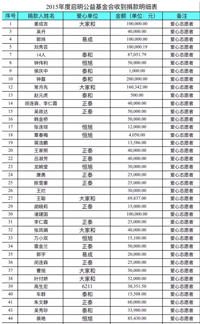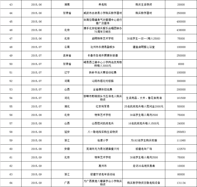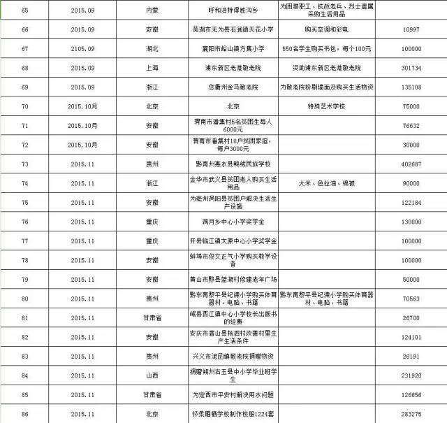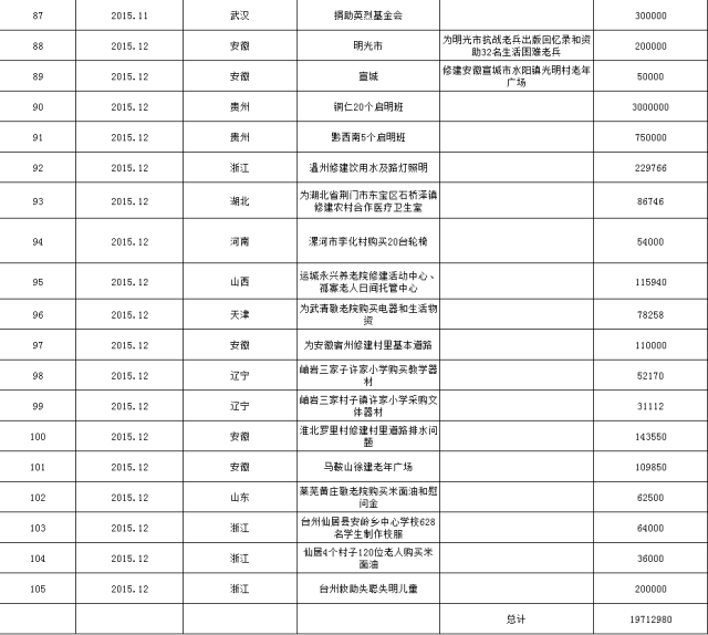 2015年年度捐贈明細——捐贈金額、受助人(單位)公示