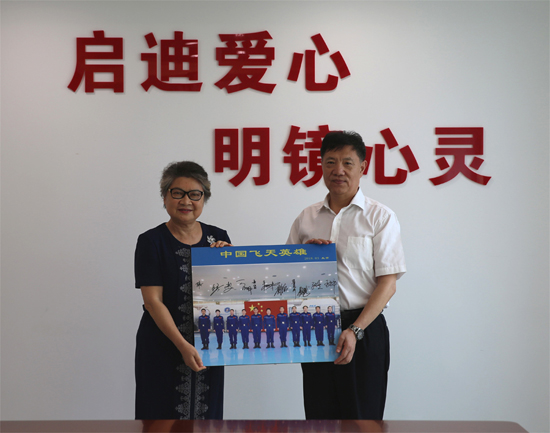 會議伊始,吳志堅理事長向汪靜女士贈送了寫有航天員簽名的畫像,祝愿雙方合作愉快長久,共同為國家的航天事業和公益事業貢獻力量。